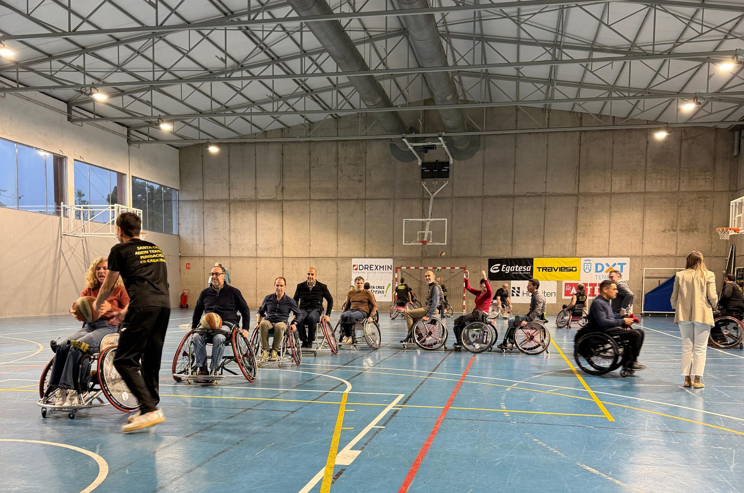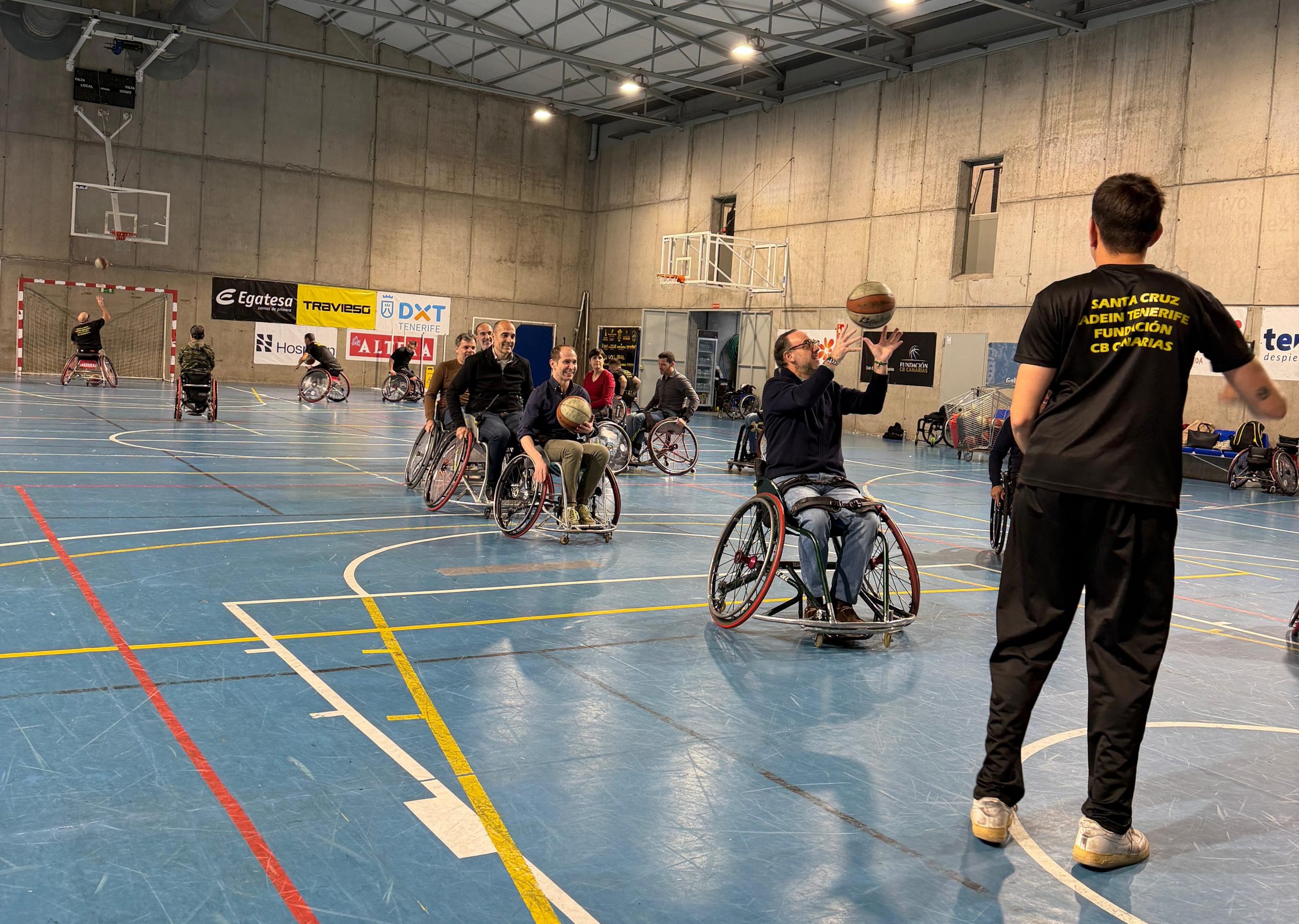 El Pabellón Sergio Rodríguez, sede de los entrenamientos y partidos del Santa Cruz ADEIN Tenerife Fundación CB Canarias, acogió la pasada semana una visita muy especial. Un grupo de profesionales del departamento de Medios de CaixaBank, procedentes de distintos puntos del país, se acercó hasta la instalación con el objetivo de conocer de primera mano la realidad del deporte adaptado y el proyecto deportivo inclusivo que impulsa el club.