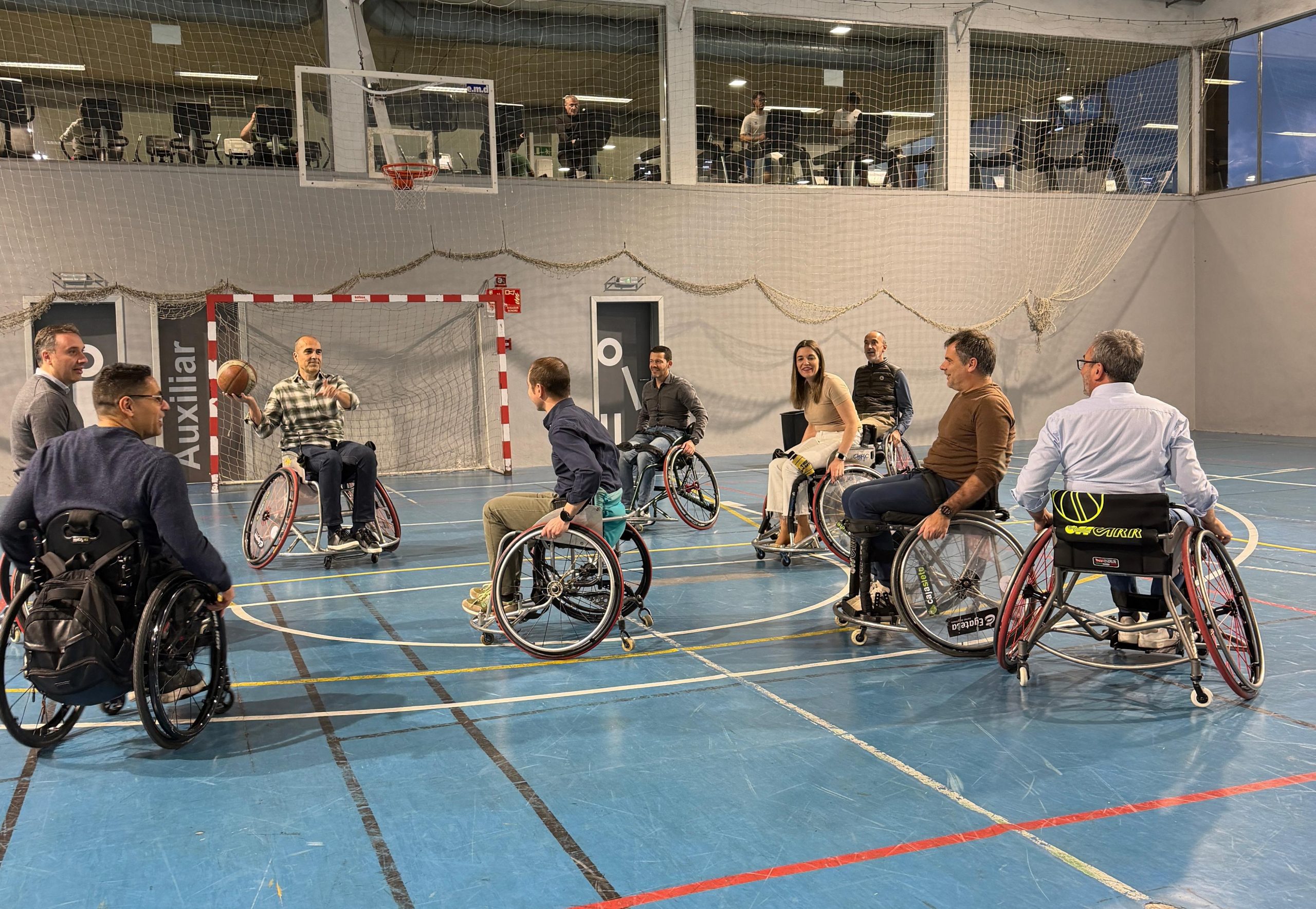 Durante el encuentro, el entrenador-jugador Tino Padrón, junto a varios integrantes de la plantilla del equipo de Superliga, compartió con los asistentes los valores, el esfuerzo y la exigencia que conlleva la práctica del deporte adaptado. Además, los jugadores invitaron al grupo a probar esta disciplina, permitiéndoles experimentar en primera persona una modalidad deportiva que fomenta la igualdad de oportunidades y la superación personal.